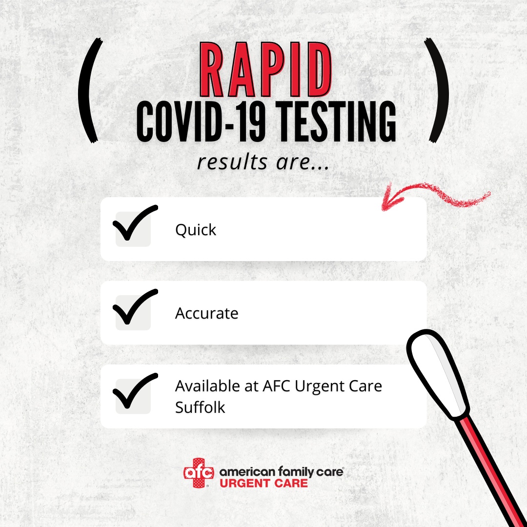 Suffolk Centerbrooke Velocity Urgent Care - Covid tests We care for illnesses injuries aches and pains X-ray sports school physicals. Usually this will allow you to get results back in under an hour and require advanced booking through the provider. Suffolk COVID-19 Testing AFC Urgent Care.